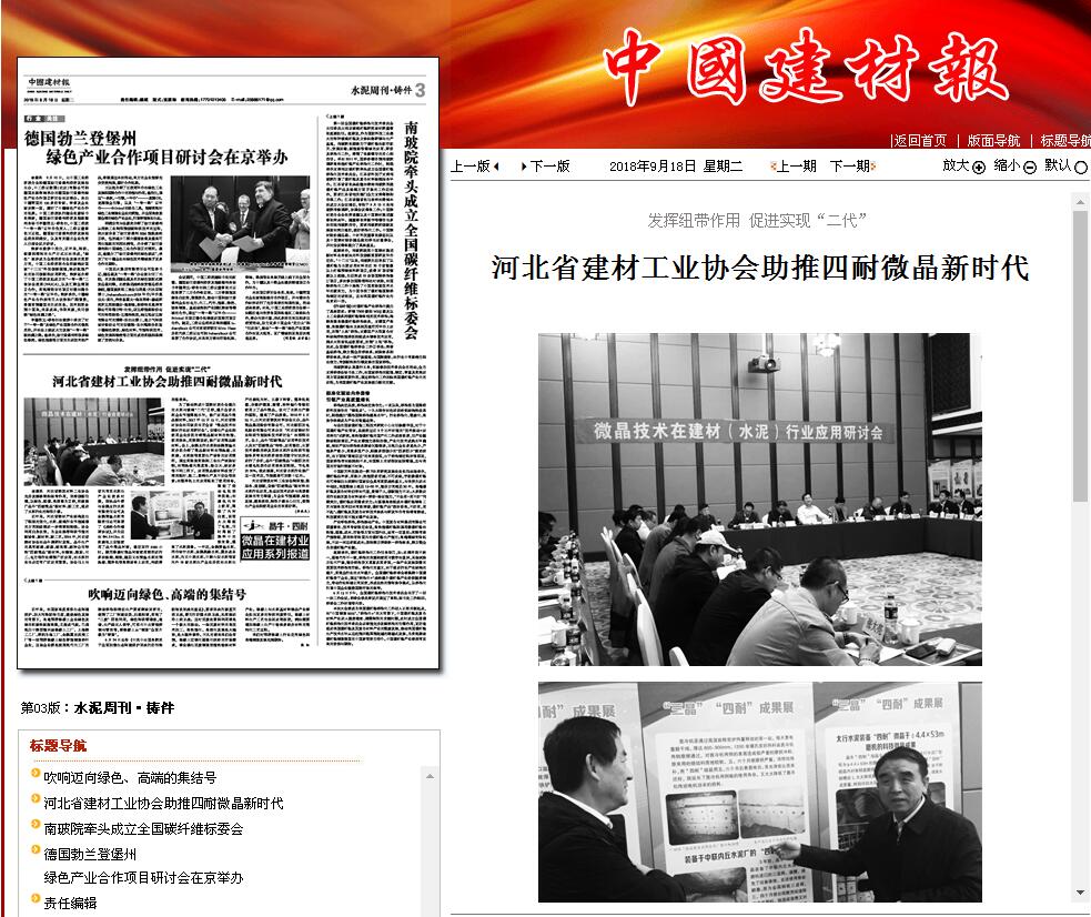 河北省建筑材料工業協會轉職能、強服務、促創新,助推“四耐微晶”新材料在水泥行業應用,是適應技術進步與高質量發展的有力舉措,為企業節能減排、綠色發展、提高效益、轉型升級盡心出力,受到生產企業和使用企業的雙重好評。