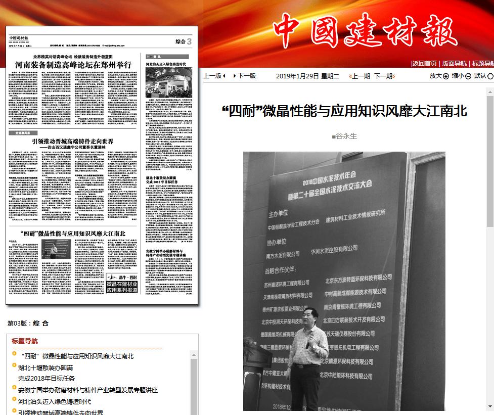 自去年2月,晶牛微晶集團股份有限公司“四耐”微晶在河北水泥企業成功應用,由晶牛、太行、贊皇三家合作撰寫的《晶核新材在水泥行業中的應用實踐與思考》學術論文在《中國建材》雜志刊發之后,微晶新材料之風在全國各地熱傳勁吹,特別是四個多月來“四耐”微晶系列報道和專題文章在《中國建材報》的刊發,更成為水泥企業、水電行業關注的熱點,引起了全國各大水泥、水電集團,新聞媒體、建筑材料工業技術情報研究機構的高度關注,微晶性能與應用知識熱風靡大江南北。