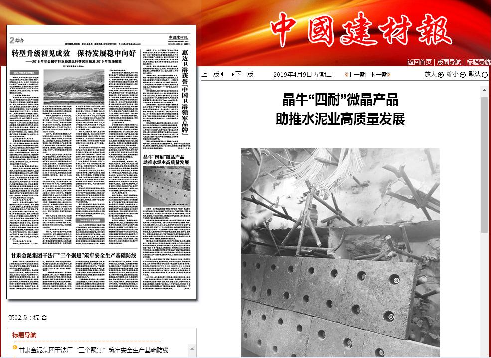 本報訊 晶牛微晶集團(tuán)股份有限公司研發(fā)的“四耐”微晶新材料成功破解了水泥行業(yè)的生產(chǎn)瓶頸問題。近期,晶牛“四耐”微晶又與北歐引進(jìn)的水泥窯協(xié)同處置設(shè)備相嫁接,以其耐高溫、耐腐蝕、不結(jié)皮的特性,成功擺脫了空氣炮設(shè)備,成為推動水泥行業(yè)轉(zhuǎn)型升級、高質(zhì)量發(fā)展的新引擎。